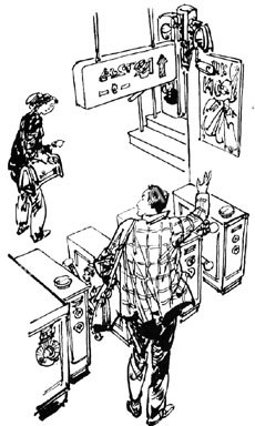 为了打听地铁入口,小凡来到路边的一个报刊零售亭。有个帅小伙刚刚在这打完电话,走时还向老板换了两个硬币。老板听说小凡要乘地铁,就指着匆匆离去的男孩说:“你跟着他就行了,他也是去坐地铁的。”