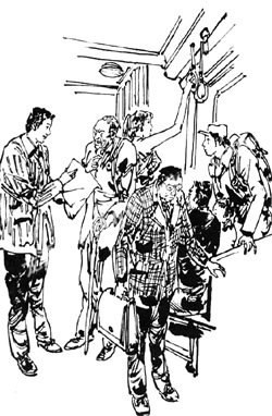 车到了下一站,上来一个拿坤包的女人,她看了看,还有一个空位,但空位旁坐着的是那个土里土气的老爷子,她不愿意挨着他坐,就抓着吊环站在那里。