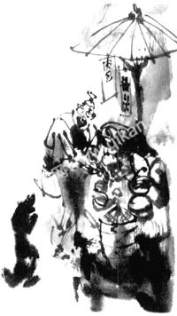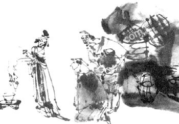 就这样,老汉第二天上街卖肉包子时就多了个帮手,他让通人性的狗帮着收钱。当时情形极为热闹,有好些人并不想吃肉包子,而是要试试这条狗是否真的认识钱,有人拿一两银子买一只包子,有人用一个铜子儿来蒙事儿,但都没有难倒秀才变成的狗,零钱找得毫厘不差,惹得顾客一片惊叹:“瞧啊,连狗都会做生意了!”老汉善有善报,肉包子生意日益红火,三年后,富丽堂皇的包子楼终于落成,即将开张。