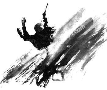 遥遥开始下滑,格桑慢慢地放着手中的绳子,快要滑到坡底时,意外发生了:格桑脚下的土松动了,等格桑察觉时已经迟了,他连喊都来不及,身子就随着崩塌的泥土栽了下去,好在他身手敏捷,伸出双手死命地抠住泥土,总算在半坡上稳住了身子,而失去控制的遥遥却急遽地往下滑去,没等果达拽住她,就一头栽下了悬崖……