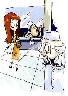 一位女士上医院看病,挂号处的工作人员问:“请问姓名?”女士说:“方平。”工作人员听后,不假思索就将名字写上,不过,他把“方”字上的一点写得很小。