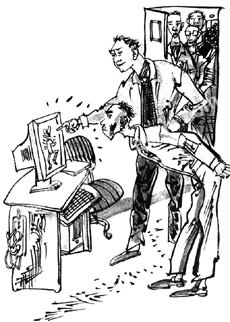 李怀忠平时对工人就这德性,一副家长兼土匪作派。他尤其瞧不上这个聂伟,人虽然老实巴交,心却细得很,还很有头脑,好像比他都聪明。聂伟低声说他来请教小敏一个技术问题。李怀忠越发嚣张:“快滚,你的岗位是值班室,不是这儿,自己什么身份不知道?我告诉你,你这次是脱岗,罚款五十元。”