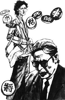对局室里的气氛紧张,隔壁房间的气氛更是紧张。车宝瑞的额上见了汗珠,他不顾风度,急得在房间里转来转去。马明德也是一颗心提到了嗓子眼,紧张得气都喘不过来了,从不念佛的他此刻口中念念有词,不住地乞求菩萨保佑。到最后,两人都在房间里呆不住了,他们一左一右等在对局室的门口,像两尊老门神。
