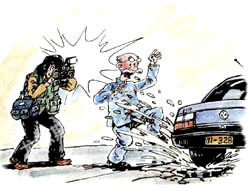这时,记者挤过来要拍特写,交警赶紧架起老头就走,一边走一边小声央求:“我们马上向有关部门反映,以最快速度修路,您看行不?”