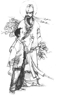 神仙点头答应了,他随即合掌默念了一阵咒语,说:“小强的病已经好了,你放心吧。现在,我要飞往南海去了,小朋友,谢谢你,是你救了我,救了你同学,也救了你父亲。”