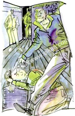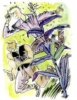 大徐若无其事地跟着秃子,搭讪着,慢慢来到了一块僻静的庄稼地,这时,大徐眼角的余光看到秃子的手慢慢往怀里伸去,立刻转身扑了上去……经过激烈的搏斗,大徐终于把秃头压在身下,掏出了他怀里的手枪,那枪沉甸甸的早已上了膛。事后,据秃头交代,他蹲号子的时候,见到一个看守也戴过类似的表带,所以,注意到大徐的手腕后,他就起了杀心。