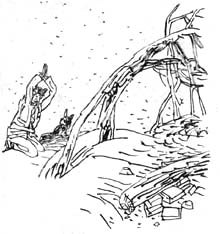 天快亮时,周全安睁开醉眼一看,发现自己一个人躺在地上,张老三不见了,自己怀中竟然抱着大狼狗“张老四”。他吃惊地爬起来一看,只见满天的大雪下来了,天地一片白,他借着雪光仔细一瞧,张老三家屋后的山峰坍塌了半边,他家的半边房屋已被埋在巨大的石块和几尺厚的积雪当中,只有自己睡着的半截房屋孤零零地立在风雪中。周全安想:难道是昨天晚上山体突然滑坡,我醉死了不知道?可张老三一家又到哪里去了?他试探着大声喊了起来,可他的声音在山谷里久久回荡,却没有人应声。