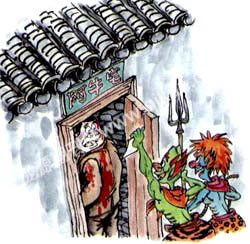 阿牛一脸纳闷,扭头问小鬼:“这地狱的房子是咋砌的,留这么窄小的空间,让我怎么住,这可是永生永世的事呀?”小鬼说道:“这都怪你自己!人死了都要来地狱住新房子,生前每贪一次,就要在这所房子里砌一块砖。小贪小砖,大贪大砖,你太贪了,结果房子就砌成了实心。”小鬼说着说着忍不住笑了,“你想想啊,幸亏你这么早暴病而亡,再晚点来,恐怕连站的地方都没有了。”