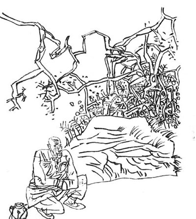 后来,赵大的老伴死了,他的腿脚也一天不如一天利落了,每天上三次山实在很吃力,于是赵大干脆在古墓边盖了间小屋,常年住在古墓旁。