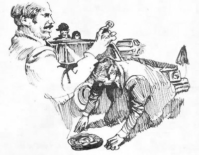 人群中有位中年妇女说:“嘿,我们家先生回来跟我一说,我还不相信,天底下还有这样的叫花子?只收五美分,多了还不要?到这儿来一看,还真是,你看人家这个乞讨,还真够职业。”