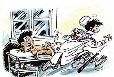 阿猴一愣,随即明白医生把他当病人了,于是说:“还没呢。”医生说:“那先进来看病吧。”说着,医生把他带进了房里,让他坐到凳子上。医生拿起胸前的听诊器就要给他检查,阿猴只想要早点脱身,连忙阻止:“不用不用,医生,我只是感冒,你开点药就行了。”医生听了,“啪”地一拍桌子:“少费话!坐好,撩起衣服来!”