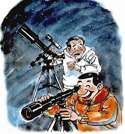 老周正觉得难熬,忽然从下面摸上来一个黑影。一开始,老周吓了一跳,这么晚了,不会碰上什么坏人吧?等那人走近了,老周借着山下宾馆投射过来的灯光一看,却乐了—来的是个年轻人,手里也拿着一架望远镜!呵呵,看来碰到知音了。现在年轻人里天文爱好者越来越少,看此人年纪不过十七八岁,这么晚了也冒着寒风来看彗星,实在难得啊!