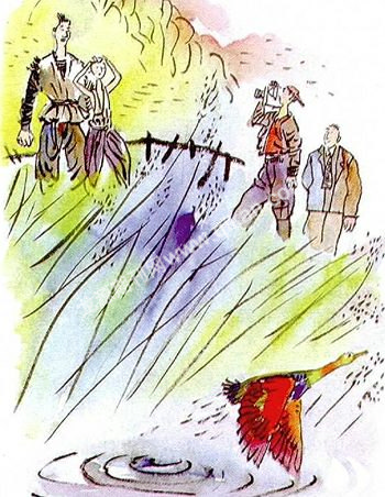 有人立马去找来了当初落水的小憨子。可小家伙听说要他下水,吓得尖叫一声,掉头就跑,转眼逃得无影无踪。村长实在没办法,只好在村里找了个会水的小孩,替代小憨子。