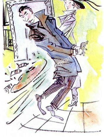 罗平看了看驼背老头,驼背老头也望了望罗平,接着,罗平就走进了隔壁的展室,在那里,一位女画家也在临摹一幅名画,罗平就站在她旁边看了起来。一会儿,一群中学生拥进来参观,他们唧唧喳喳,打闹不休,就在这个时候,一个学生从罗平面前走过,罗平好像是被那学生推了一下,正好撞到了那位女画家,颜料撒了一地,罗平一边道歉,一边上前帮忙收拾,他笨手笨脚的,两只脚把颜料踩得一塌糊涂,那些学生见出了意外,也纷纷围过来看热闹,展室里顿时骚动起来……