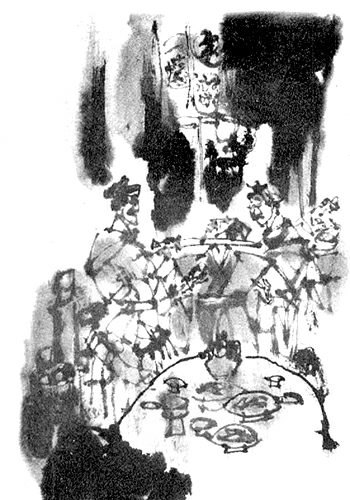 第二天,城东布庄的吴掌柜来到聚德斋,朱老六放下手头的事,将吴掌柜带到一间雅座,亲自陪着喝酒。吴掌柜喝了两杯,就问:“听说你被叫到尚书府去了?”