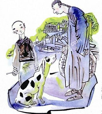 这天,小黑狗一大早就跑出门,等到了吃早饭时,竟然叼着一锭银子回了家,径直放在端端爹脚边,然后又出去了。端端爹捡起银子,大惊。不一会儿,小黑狗又叼回一锭银子,还是放在端端爹脚边,又转身出了门。端端爹忙叫儿子跟着小黑狗,看它是从哪儿叼回的银子。