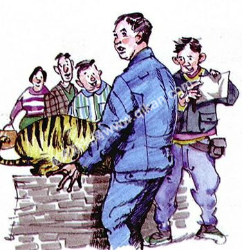于是,王大山雄赳赳气昂昂地跑到老虎模型后面,神气活现地在假老虎的屁股上摸了又摸,一直摸了好长一阵子,感觉非常过瘾了,这才心满意足地离开。想不到,小店老板拿着一张纸头走过来,说:“先生,请付五块钱。”