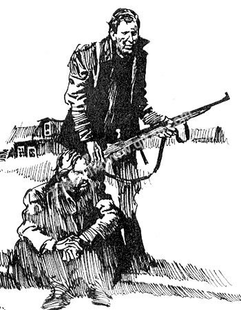妻子叹息了一声,没有再坚持自己的想法。桑德斯说完后,就拿着枪坐在门口的椅子上。当夜幕降临的时候,他已经有点儿后悔了,不该答应让那个男人留下来,谁知道漫长的一夜会发生什么事呢?他还担心自己这么对待一个陌生的男人,也许结果会证明他是在养虎为患。等那个人养好伤,恢复力气的时候,谁能保证他不会忘恩负义伤害他们呢?想到这,桑德斯不禁冒出了冷汗。