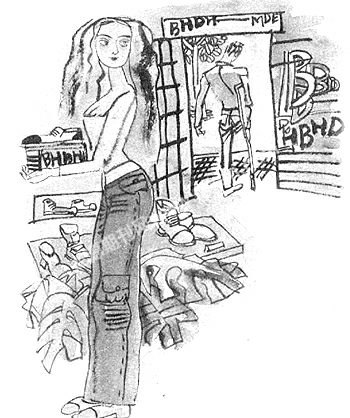 这天,小周的旧鞋穿坏了,迫不得已,他又走进鞋店挑选鞋子,一个女店员跟在他身边作介绍。款式五花八门,他看了好几双都不合意,转过一个柜台,两人不约而同地指了指一双新款球鞋,然后对望了一眼。