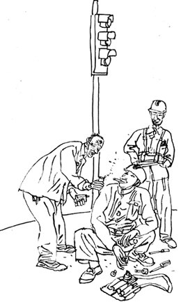 老五被送进医院后,足足呆了半个月,才又出现在菜市场。人们都关切地问他,花了多少医药费,老五恨得牙痒痒:“两万多块!他妈的,那个黑心的,就这样跑了。”
