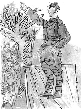 一听说放假,军营里立刻炸了锅,可以走亲访友,又有饭吃,何乐而不为?士兵们都想出去逛一逛,正在议论纷纷时,军部又来了电话:规定每天出外访友的人数不得超过全营三分之一,这样每人一天,三天过去,个个都有机会。