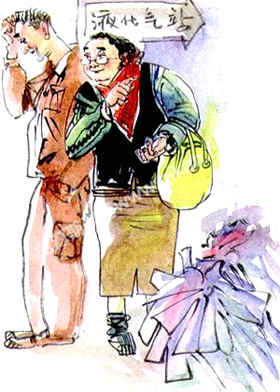 旁边的一个中年妇女跟于老太说,这人是个充液化气的,在这里干了有些日子了,平时充完气,都是他帮忙把煤气罐扛到楼上去。