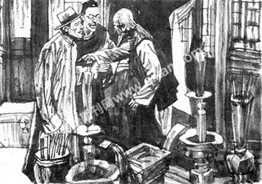 秦惠已是穷途末路,正所谓“人穷气短”,他叹了两声,拿起笔准备画押。就在此时,突然从外面奔进一人,那是万源行的一个伙计,他向钱武禀报:老掌柜说,万源行里存有善缘堂的东西,请善缘堂的掌柜即刻过去,办交接手续。这个伙计说的“老掌柜”,当然就是钱武的父亲钱穆之。