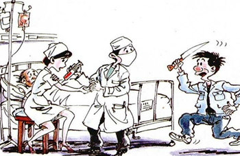 亚九拍了拍胸膛,指了指医生,举起那把锃亮的菜刀,说:“我知道未来岳母急需要用血,我是特地来给岳母‘送血’的,你看,这刀我刚磨的,一刀割下去,快啊!哪像你那样拿针扎来扎去,耽误时间!”