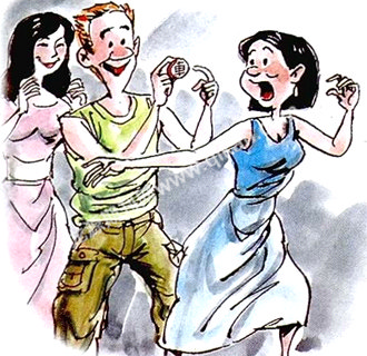 众人一瞧,原来小林手中拿着一枚象棋的“车”,大家哄堂大笑,梁大姐窘着脸,说不出话来……