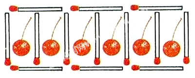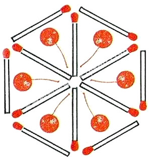 小明有6颗樱桃,用13根火柴分隔开来,现在一根火柴被拿去点火了,只剩下12根火柴,怎么才能用剩下的火柴把樱桃隔开呢?