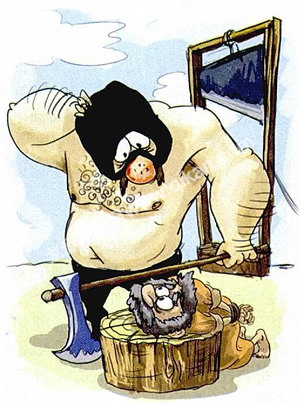 很早以前,一位商人因一个案子被牵连,最后被判斩首。临刑那天,当宣布执行死刑时,那商人走到铡刀前,侧着头,小心地把头搁在砧板上。