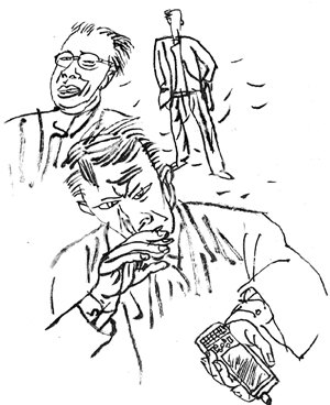 聚会的日子终于到了,屯子如约来到一家酒店的一个小会议厅,他迫不及待地要见到刘健和刘键。进了门,屯子看见刘健正坐在沙发上,和一群同学眉飞色舞地聊着天,屯子忐忑不安地挤到刘健身边,他正不知该如何开口,突然看见刘健面前正放着一个手机,屯子一下子有了主意,便上前一把拿起刘健的手机,说:“哎!刘健,你的手机够漂亮的呀,新换的吧?”
