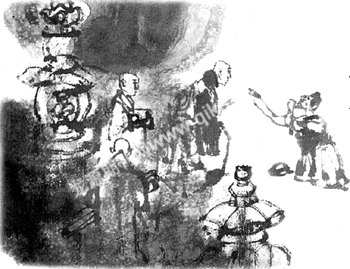 这天皇帝没有上早朝,正在后宫踱来踱去,显得十分惊慌。一行和尚一进门,皇帝就迫不及待地说:“国师啊,大事不好了,刚才司天监的官员来报,说是昨晚天上的北斗七星不明不白地就没有了,没了北斗七星,是不是要发生什么祸事了?你是我朝的国师,可得给朕想想办法呀!”