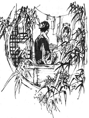 第二天,书生请来了一个和尚,和尚在屋里念了好一会儿咒,然后又在门上贴了一张符。到了晚上,女鬼找了一根两丈长的竹竿,远远地将符挑了下来,扔水沟里去了,然后她走进屋,又在书生旁边坐下,得胜似的看着书生,满脸俏皮劲。书生不看她,她又把脸凑到他鼻子跟前,书生无可奈何,只是强迫自己要静心要静心,坚决不受她的影响。