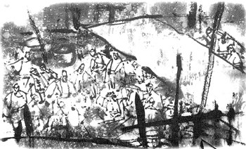 石正拜毕,便抬起头来朝着那棺木望去,这一望不要紧,他霍地立起身来,情绪显得十分激动,冲着郑同和“叽哩哇啦”乱叫,郑同和不明白他的意思,身边也没人“翻译”,还没来得及猜出这哑巴说了些什么,却又见石正一颠一颠地走入后室,这后室直通后面的大杂院。没多久,石正又返了回来,手指着大杂院,冲着郑同和又是跺脚又是狂叫。这下郑同和明白石正的意思了,因为石正送来的那副棺木就放在大杂院里,他显然是在质问郑同和:为什么不用他送来的棺木?此事不提倒也算了,现在一提,郑同和积了几年的怒气、怨气、恨意、悔意一下涌上心来,他一时间顾不了斯文,举起手来,“啪”,给了石正一记响亮的耳光……