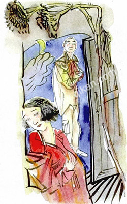 夜深人静,女人走进了那老板独住的东屋,老板醉后正睡着,那女人就依偎在老板身旁。过了很久,老板醒了,见了这个很有几分姿色的女人也难免心猿意马起来,正要顺势拥抱,却又突然清醒过来,他断然推开了女人,穿起衣服就要走,就在这时,只见柳眉抄起一把剪刀,双手攥紧便要自杀,老板赶紧上前夺下剪刀说:“你这是为啥呀?”