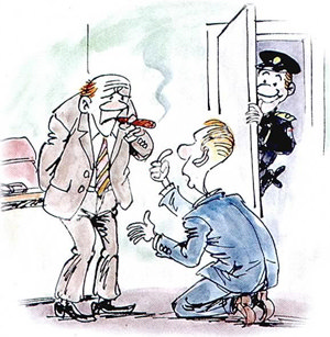 果然,审问他的小警察无计可施,就一拍桌子,吓唬他说:“你再不承认,我就把我们警长找来,让他亲自审你。”