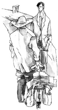 又走了一阵,就到了第二个村子,这个村子虽然没有书信,但经过这儿,也得进去看看人家需要买点什么,顺便抽个烟、歇歇脚。从村子出来后,老爹又拿笔在白纸上画了个圆点,告诉小海这叫什么村,接下去,要怎么走。小海也只是烦闷地嗯一下。
