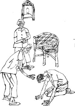 过了两天,吉力在单位接到了妻子的电话,告诉他,叔叔找到家里来了,带着三个儿子一块来的,让他赶快回去。吉力放下电话,不禁苦笑着连连摇头,看来装穷这一招并没有吓住对方呀!想了想,脸上又不禁发烧,这一下可真是弄巧成拙了,让人家知道他故意装穷,面子往哪搁呀?
