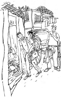 到上海后,吉力顾不得找个地方落脚,就带着行李,照着人家提供给他的地址找去。转来转去,离叔叔的家越来越近,地方也越来越偏僻,最后走进了一条阴暗狭窄的小里弄。一看这个地方,吉力的心不由自主地一沉,在小弄堂口愣了半晌,然后还是照着路两边门顶上模糊剥落的门牌号,一家家找过去,终于走到了叔叔家门口。