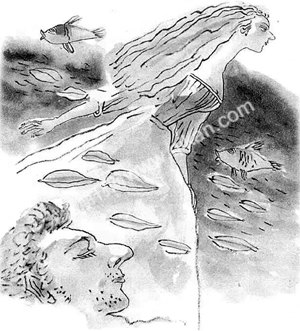 吉米谢过巫师,辞别了父母,偷偷到海边吃下了那颗药,变成了一个英俊的男人。看着自己健美的双腿,吉米觉得又高兴又新奇。