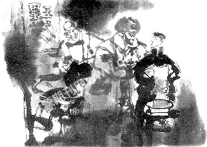 听郑大这么一说,红脸男人突然站了起来,对郑大说:“好了,天不早了,我改日来剃头。”说着,红脸男人起身推开门走了。