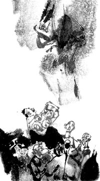 段金鹏恼羞成怒,一遍又一遍地念动咒语,旋风越刮越大,转眼间,连段金鹏和他自己的戏台都被卷了进去……\xFF