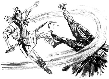 轩辕三笑正暗自打着如意算盘,“四条腿”已经出手。只不过,“四条腿”没有攻向卢长天,而是两人一组,合力攻击轩辕三笑与妩媚三娘。这一变故大出轩辕三笑与妩媚三娘的意料,他们怎么也想不到,“四条腿”居然会帮着卢长天来对付自己。等轩辕三笑与妩媚三娘反应过来之时,已经迟了。“四条腿”虽然年纪轻轻,但凭着腿上的功夫绝对称得上是江湖中的一流高手。轩辕三笑躲闪不及,便被一记莲花腿踢中要害。妩媚三娘比他也好不了多少,当她还没弄明白怎么回事时,便被踢中了腹部的天枢穴。