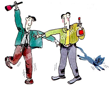 这一喝可不得了,结账出门时两人都醉得东倒西歪。