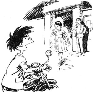 羽绒服厂要上夜班,阿P生怕老婆出事,第一天便骑摩托去接。这些天正是梅雨季节,毛毛雨下起来就没完没了,阿P在泥水里左摇右晃,好不容易才到了工厂门口。