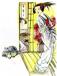 “让那个女孩儿滚出来!”男仆们叫嚣着说,他们家小姐放在梳妆台上的宝石不见了,晶美当时正进府找她母亲,所以男仆们一口咬定,宝石一定是晶美偷的……看到晶美无助地流着泪,渡部发怒了,他让晶美躲进里屋,他转身直奔门口,跟那帮男仆大吵起来。