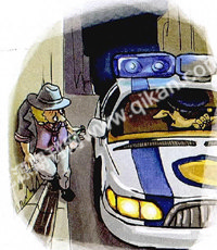 有个年轻人喝醉了酒,一只脚踩在马路上,另一只脚踩在水沟里,一脚高、一脚低走得相当吃力。一个警察正好开车路过,就停下车说:“喂,伙计,上车吧,看你都醉得不成样子了。”