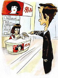 一周后,领导前来考核小张上任后的工作情况,只见小张跑来跑去,忙得满头大汗,嘴里不断叫着:“李宁,总台有你的电话!皮尔·卡丹,你把这里扫一下,都这么脏了。哎,顾客都来了,羽西你怎么还在吃包子……” (王毅)