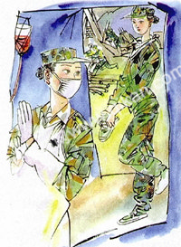 黄医生像慈祥的妈妈一样注视着晓兰,突然,她像发现新大陆似的叫了起来:“你这姑娘,怎么穿着这么大号的迷彩鞋啊?”她注意到晓兰左脚穿着一只白色的运动鞋,可右脚却穿着一只特大号的迷彩胶鞋,两只鞋显得很不对称。
